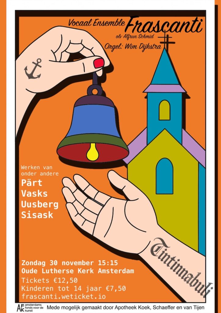 Op zondagmiddag 30 november zingt Frascanti een programma met muziek van Arvo Pärt (die dit jaar 90 is geworden) en andere Esten, waaronder Pärt Uusberg (wij vinden het ook verwarrend), en ook nog één Let. Waar nodig ondersteund door Wim Dijkstra op het orgel zingen we soms melancholische, soms feestelijke en vooral mooie muziek uit de Baltische staten. Voor het koor ook uitdagend vanwege de soms Baltische teksten (Fins en Ests), maar het moeilijkste is het woordloze An den Wassern zu Babel van Pärt…